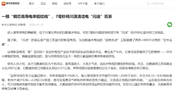 《新華日?qǐng)?bào)》聚焦 | 遠(yuǎn)東電纜助力川滇清潔電7毫秒“閃送”蘇浙